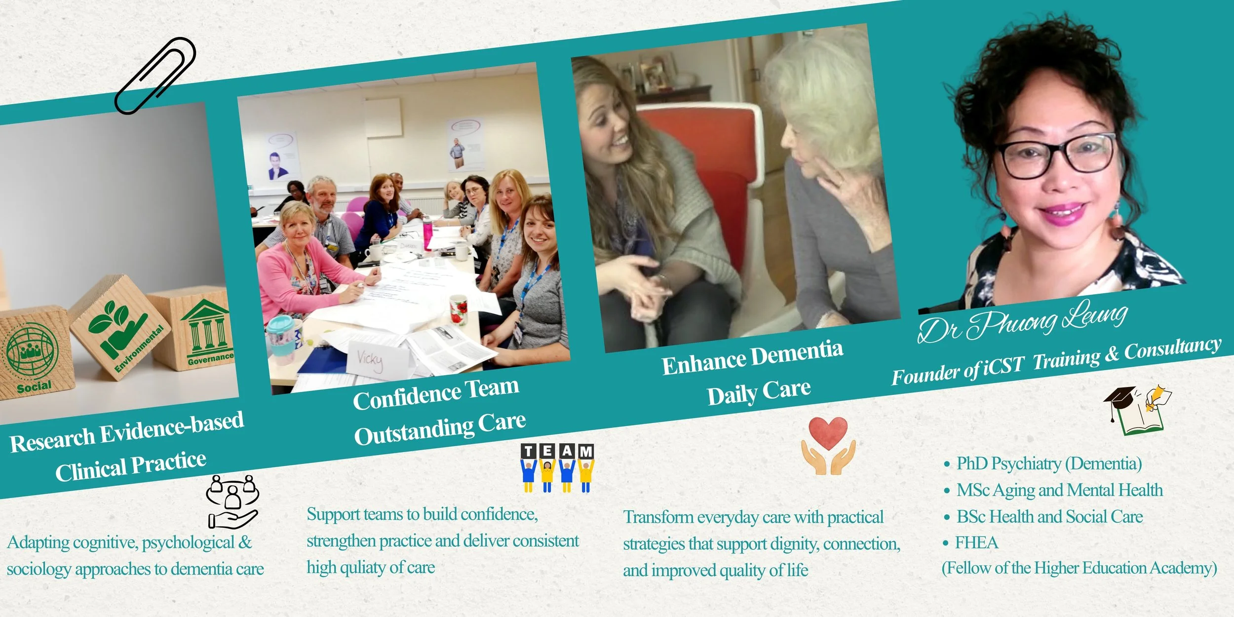 I am Dr Phuong Leung, a dementia specialist with expertise in cognitive and psychological approaches to dementia care. I support professionals and organisations to turn research into practical, effective care that improves everyday experiences for people living with dementia.